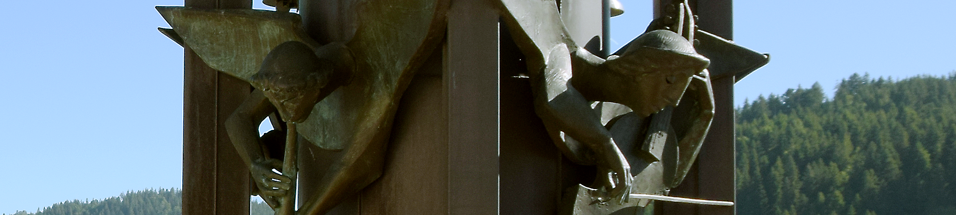 Immer kurz nach der vollen Stunde ertönen besondere Klänge durch den Ortskern von Hinterzarten, sie sind auch vom Adlerfelsen oder vom Vinzenz-Zahn-Felsen aus hörbar: eine wie von metallischen Hämmern geformte Melodie, meist ein Choral oder ein Volkslied wird Glöckchen für Glöckchen hell angeschlagen und lässt Gäste wie Einheimische aufhorchen. Je nach Kirchenjahreszeit erklingen passende Lieder, ihre Klänge stammen von dem frei vor dem Evangelischen Gemeindehaus stehenden Glockenspiel mit 16 Melodieglöckchen. Tritt man näher, sieht man vier musizierende Engel um das Glockengerüst angeordnet, sie sind aufwändig gestaltet und stammen von dem Künstler Jo Emil Homolka (1925-2010), der in Königsfeld im Schwarzwald lebte. Er war als Erzieher und Werklehrer mit dem Neuaufbau eines modernen Kunstunterrichts an den Zinzendorfschulen betraut, war aber nicht nur Lehrer, sondern auch freier Bildhauer. Sein umfangreiches und mit Preisen ausgezeichnetes plastisches Werk besteht aus Skulpturen in Bronze, Holz, Beton und Edelstahl, oft im Auftrag von Kirchen und Kommunen und für soziale Einrichtungen.