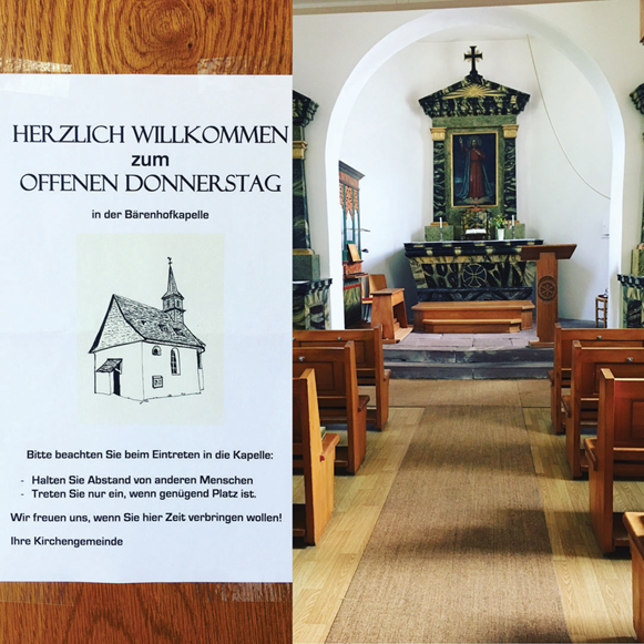 Seit April 2025 finden unsere Gottesdienste am ersten Wochenende des Monats in Titisee in der Bärenhofkapelle und ansonsten in der Regel immer in Hinterzarten in der Evangelischen Kirche statt.