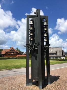 Immer kurz nach der vollen Stunde ertönen besondere Klänge durch den Ortskern von Hinterzarten, sie sind auch vom Adlerfelsen oder vom Vinzenz-Zahn-Felsen aus hörbar: eine wie von metallischen Hämmern geformte Melodie, meist ein Choral oder ein Volkslied wird Glöckchen für Glöckchen hell angeschlagen und lässt Gäste wie Einheimische aufhorchen. Je nach Kirchenjahreszeit erklingen passende Lieder, ihre Klänge stammen von dem frei vor dem Evangelischen Gemeindehaus stehenden Glockenspiel mit 16 Melodieglöckchen. Tritt man näher, sieht man vier musizierende Engel um das Glockengerüst angeordnet, sie sind aufwändig gestaltet und stammen von dem Künstler Jo Emil Homolka (1925-2010), der in Königsfeld im Schwarzwald lebte. Er war als Erzieher und Werklehrer mit dem Neuaufbau eines modernen Kunstunterrichts an den Zinzendorfschulen betraut, war aber nicht nur Lehrer, sondern auch freier Bildhauer. Sein umfangreiches und mit Preisen ausgezeichnetes plastisches Werk besteht aus Skulpturen in Bronze, Holz, Beton und Edelstahl, oft im Auftrag von Kirchen und Kommunen und für soziale Einrichtungen.